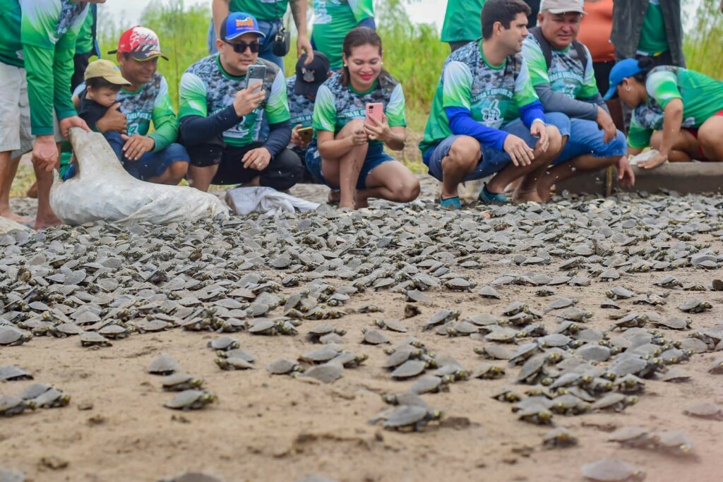 A soltura ocorreu na Ilha da Coroa, na sexta-feira (17/02). Esta é a última etapa de um trabalho que começou em setembro de 2022. Na oportunidade, os comunitários fazem a coleta dos ovos nas praias, campinas e barrancos.