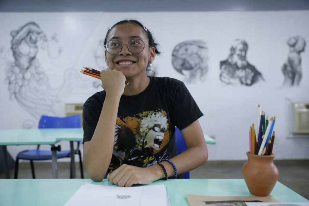 Já Mayra, aluna de Desenho 1, entrou na instituição no início de 2022. Mayra conta que entrou para desenvolver uma habilidade artística porque ficava muito tempo no celular, o que contribuía para que se tornasse introspectiva.