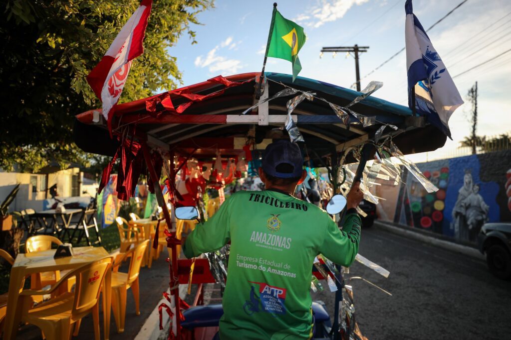 Trabalhando como tricicleiro há 20 anos, Plácido Melo, 61, fala da expectativa para receber os turistas e explica que a cada ano prepara uma decoração diferente, sempre beneficiando as cores azul e vermelha. “Eu sempre gostei de enfeitar o meu veículo de trabalho. E é esse lado que eu sempre gosto de fazer, sobre a ornamentação dele”, afirmou Plácido, que batizou o seu instrumento de trabalho de “Triciclo Pai D’égua”.