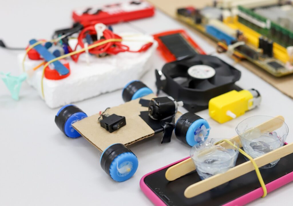 Entre os exemplares produzidos estão carrinhos confeccionados a partir de equipamentos retirados de aparelho DVD e computador. Além disso, dez óculos 3D foram elaborados, com o uso de garrafas PET e água, pelos próprios alunos, todos do 7º Ano do Ensino Fundamental.
