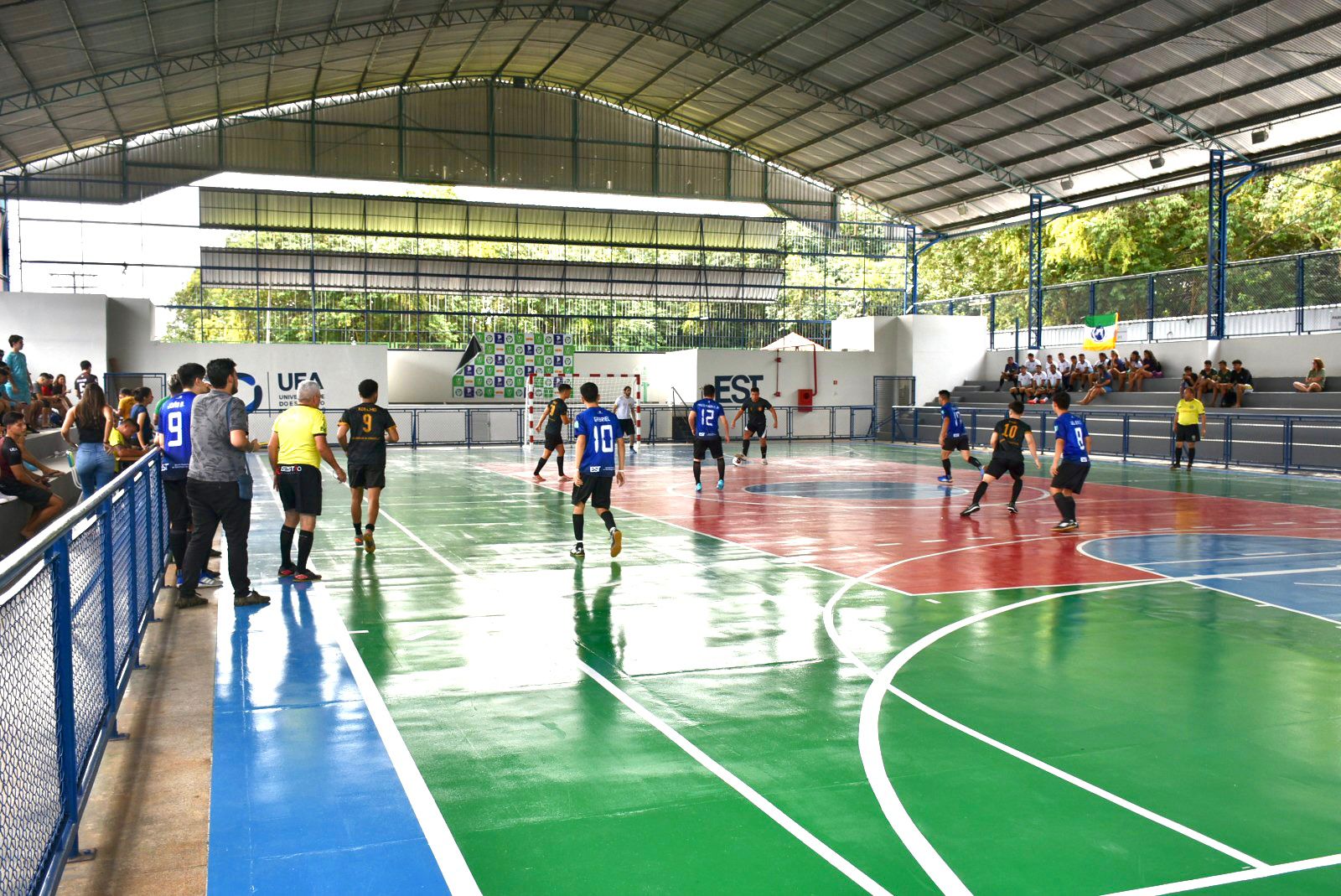 O domingo (05/03) começou agitado na quadra da Escola Superior de Tecnologia (EST). Das 9h às 14h, foram disputadas nove partidas de futsal do VII Jogos Universitários da Universidade do Estado do Amazonas (JuniUEA), que animaram a comunidade acadêmica da instituição.
