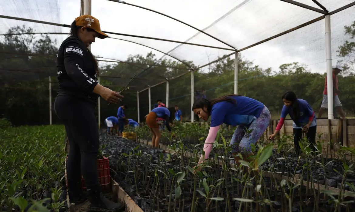 O gestor do projeto Mangues da Amazônia, John Gomes, com mudas de mangue que serão levadas para reflorestamento. Fernando Frazão/Agência Brasil