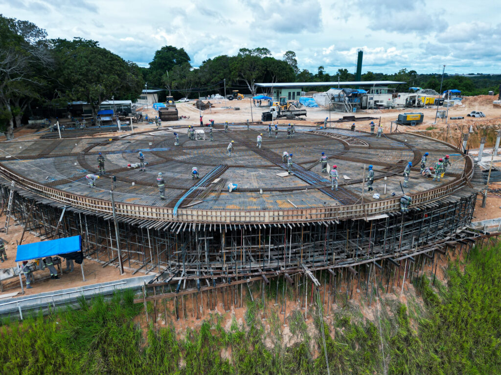Na chamada Oca, espaço multiuso do parque, foi concluída a forma e escoramento de vigas e laje do térreo, recebendo as armaduras e ferragens para a concretagem, com apoio de cabos de protensão. A ideia é iniciar a moldagem da cúpula na segunda quinzena de fevereiro e início de março. Os cabos são fios de aço de alta resistência trançados, usados para reforçar estruturas de concreto.
