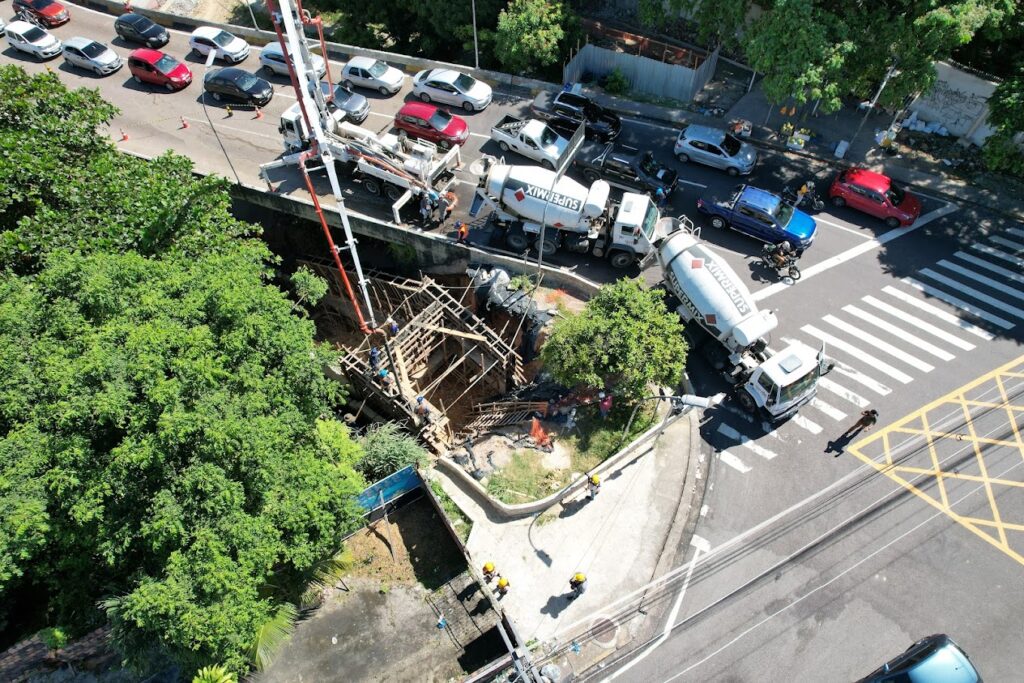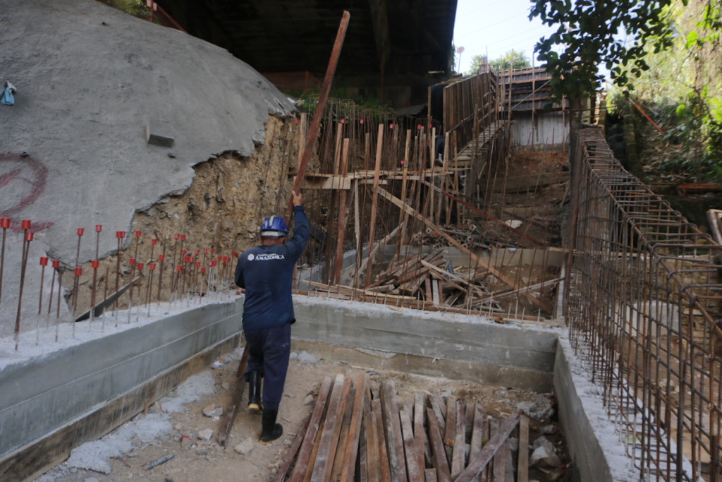 A Prefeitura de Manaus, por meio da Secretaria Municipal de Infraestrutura (Seminf), intensifica os trabalhos de contenção em área de declive abaixo do viaduto Josué Cláudio de Souza, por onde passa a avenida Álvaro Maia, na zona Centro-Sul.
