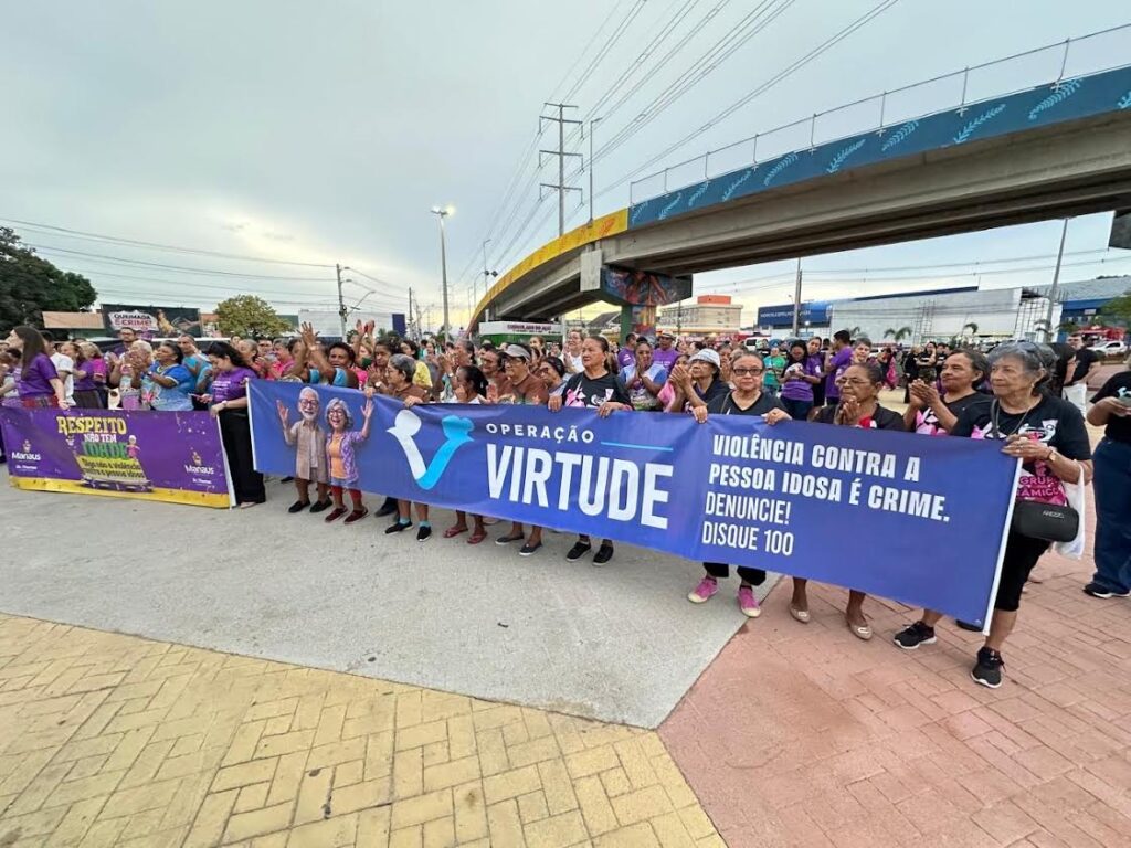 A Prefeitura de Manaus, por meio da Fundação de Apoio ao Idoso Dr. Thomas (FDT), realizou, na quarta-feira, 22/10, um ato público em celebração ao “Dia D” da operação “Virtude”, mobilização nacional que reforça o respeito, a valorização e a proteção da pessoa idosa. O evento ocorreu no complexo viário Rei Pelé, na avenida Autaz Mirim, zona Leste, reunindo mais de 300 idosos e representantes da rede de proteção, entre órgãos municipais, estaduais, instituições parceiras e entidades da sociedade civil.