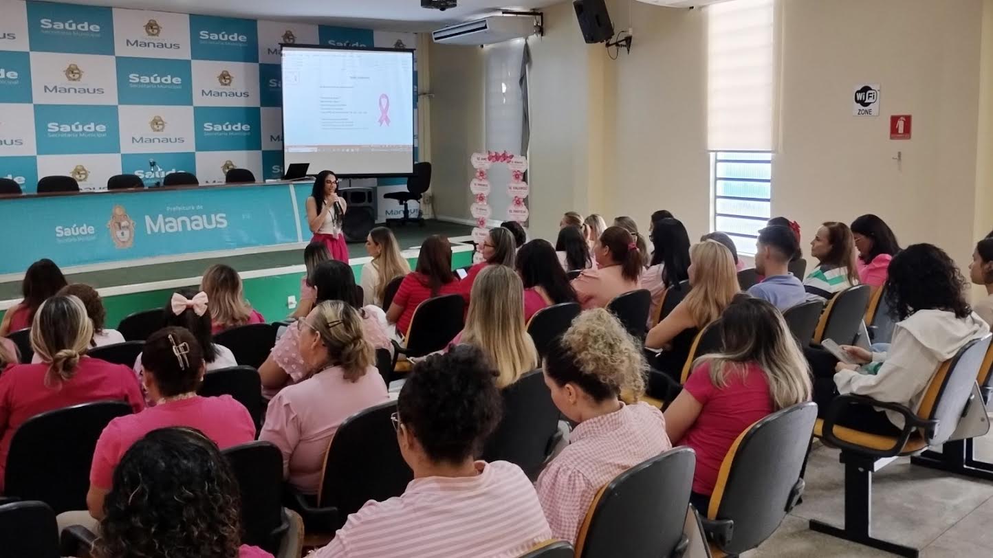 A prevenção e o diagnóstico precoce do câncer de mama foram temas de uma ação de educação em saúde promovida pela Prefeitura de Manaus, na manhã de terça-feira, 7/10, voltada às servidoras e servidores da sede da Secretaria Municipal de Saúde (Semsa). A programação integra a agenda da secretaria com foco no “Outubro Rosa”, mês de conscientização sobre a doença.