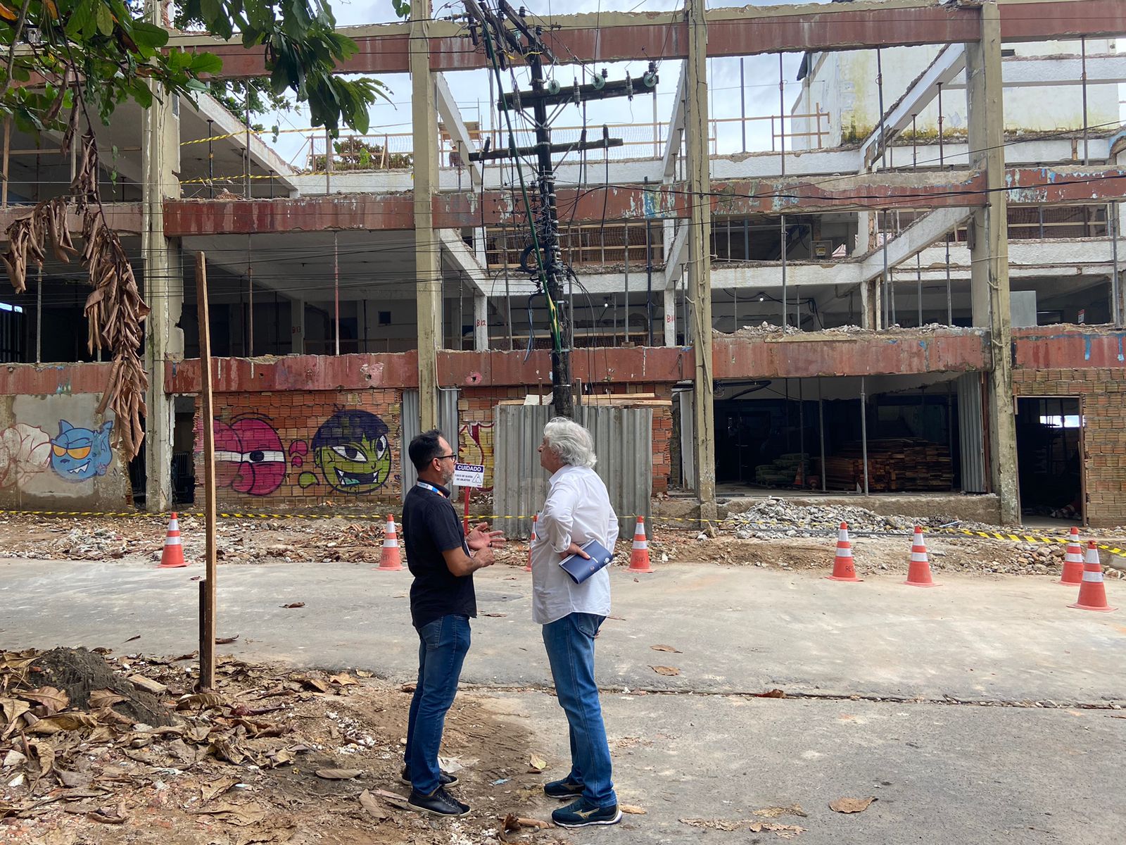 A despoluição visual no tecido urbano foi pauta com equipe da Unidade Gestora de Projetos Municipal de Energia (UGPM) e Implurb no local das obras, onde se percebe, com o início de demolições de muros para abrir o Largo de São Vicente, um emaranhado de fios aéreos.
