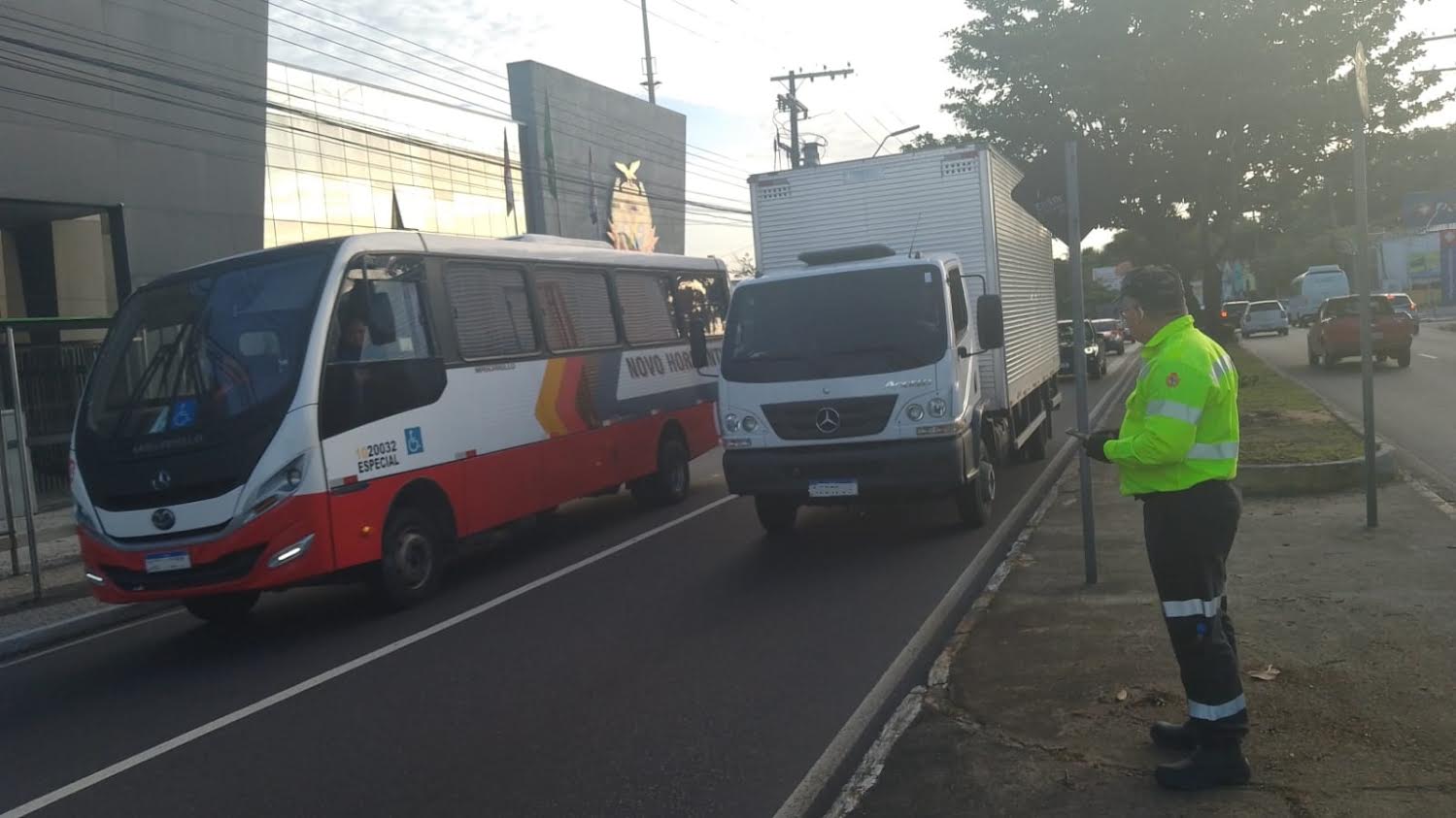 As avenidas Max Teixeira, Rodrigo Otávio e Efigênio Salles são vias regulamentadas para veículos pesados transitarem na faixa da direita. Durante a operação, na segunda-feira, 24/4, 32 motoristas foram autuados por transitarem na faixa da esquerda.