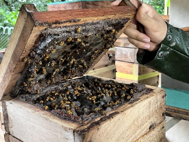 As especificações das caixas são as recomendadas pelo Instituto Nacional de Pesquisas da Amazônia (Inpa), referência em pesquisa com abelhas regionais. O objetivo é facilitar o manejo correto da espécie e a coleta do mel. Com o material adequado, é possível otimizar o processo.