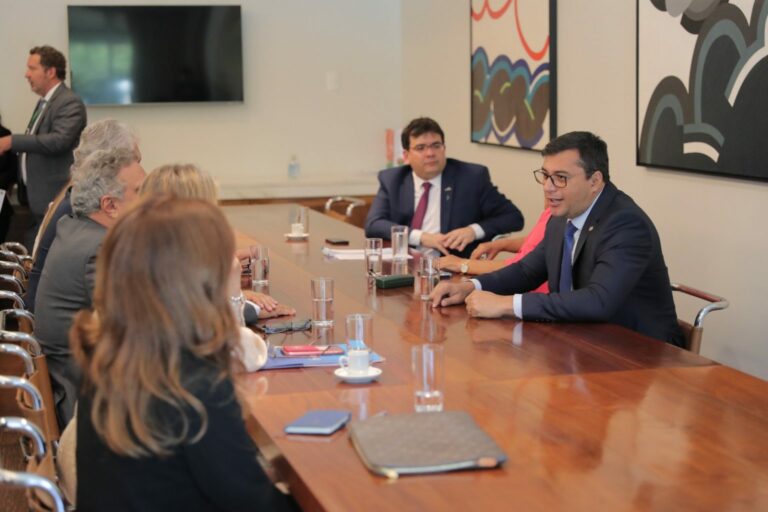 O governador Wilson Lima esteve, na terça-feira (14/02), em Brasília, em reunião com o presidente da Câmara dos Deputados, Arthur Lira, e o presidente do Senado Federal, Rodrigo Pacheco, para tratar de pautas comuns aos estados. Lima integrou a comissão do Fórum Nacional de Governadores,