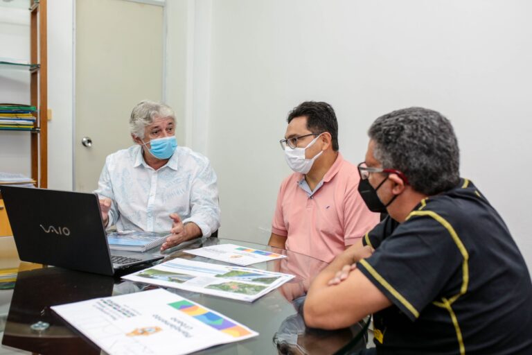 O prefeito de Manaus, David Almeida, ao lado do vice-prefeito e chefe da Casa Civil, Marcos Rotta, assinou, nesta quinta-feira, 11/5, a ordem de serviço para a construção do Terminal de Integração 7, o T7, que será localizado na avenida Torquato Tapajós, esquina com avenida