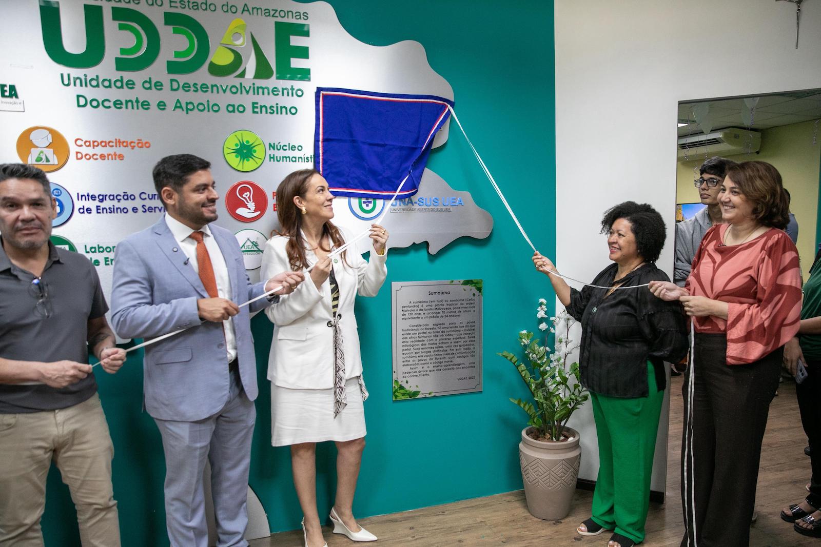 A Unidade de Desenvolvimento Docente e Apoio ao Ensino da Universidade do Estado do Amazonas (Uddae/UEA) celebrou, nesta segunda-feira (22/9), três anos de fundação com a inauguração de dois novos núcleos estratégicos: a Aldeia da Transformação Digital na Saúde e Inovação na Amazônia – Saúde, Tecnologia e Inovação – (Aldtec) e o Grupo de Pesquisa Saúde, Inovação e Tecnologia na Amazônia (Sita). A cerimônia contou com a presença do reitor da UEA, Prof. Dr. André Zogahib, e reforçou o papel da instituição como referência em inovação, ciência e tecnologia aplicadas à saúde na região.