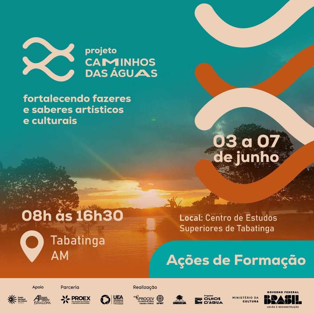 Em continuidade às ações do Caminhos das águas – fortalecendo fazeres e saberes artísticos e culturais, o curso de formação é voltado a artistas, arte-educadores, educomunicadores, agentes culturais, mestres e mestras de saberes chega a Tabatinga (a 1.108 quilômetros de Manaus).